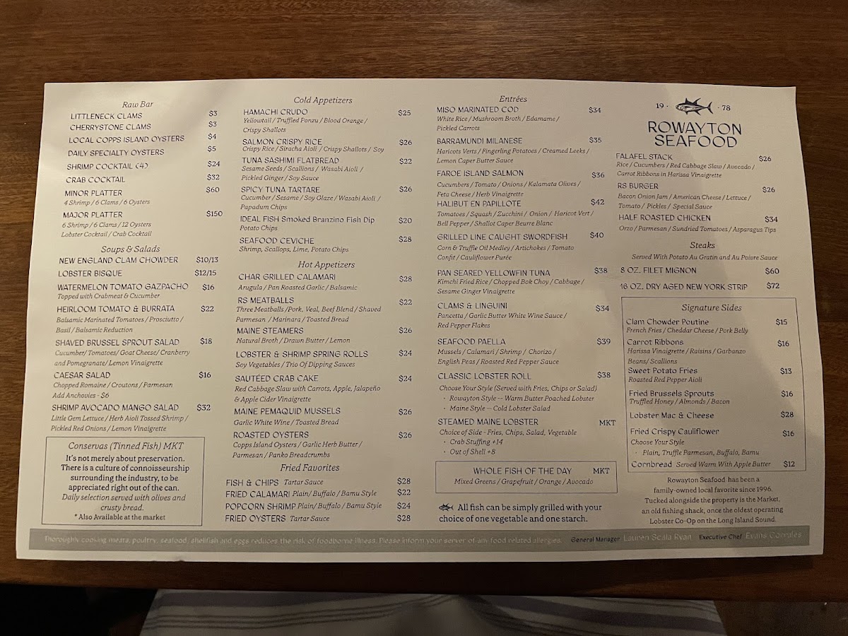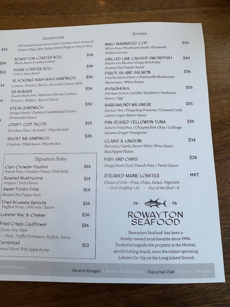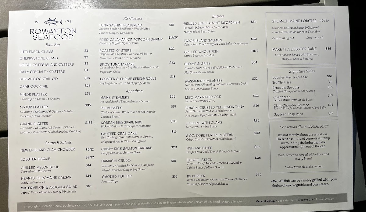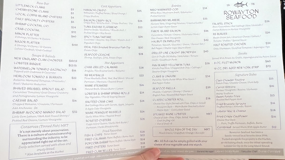 Rowayton Seafood Menu