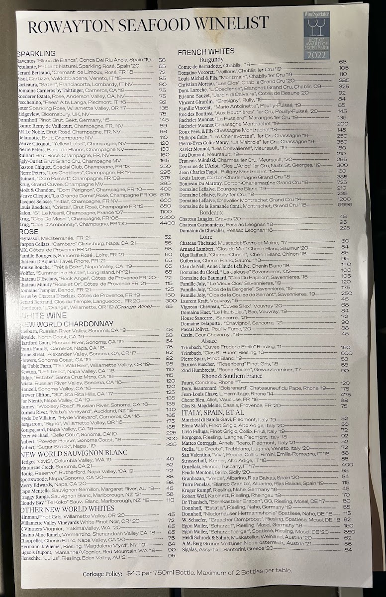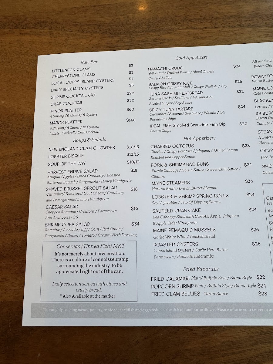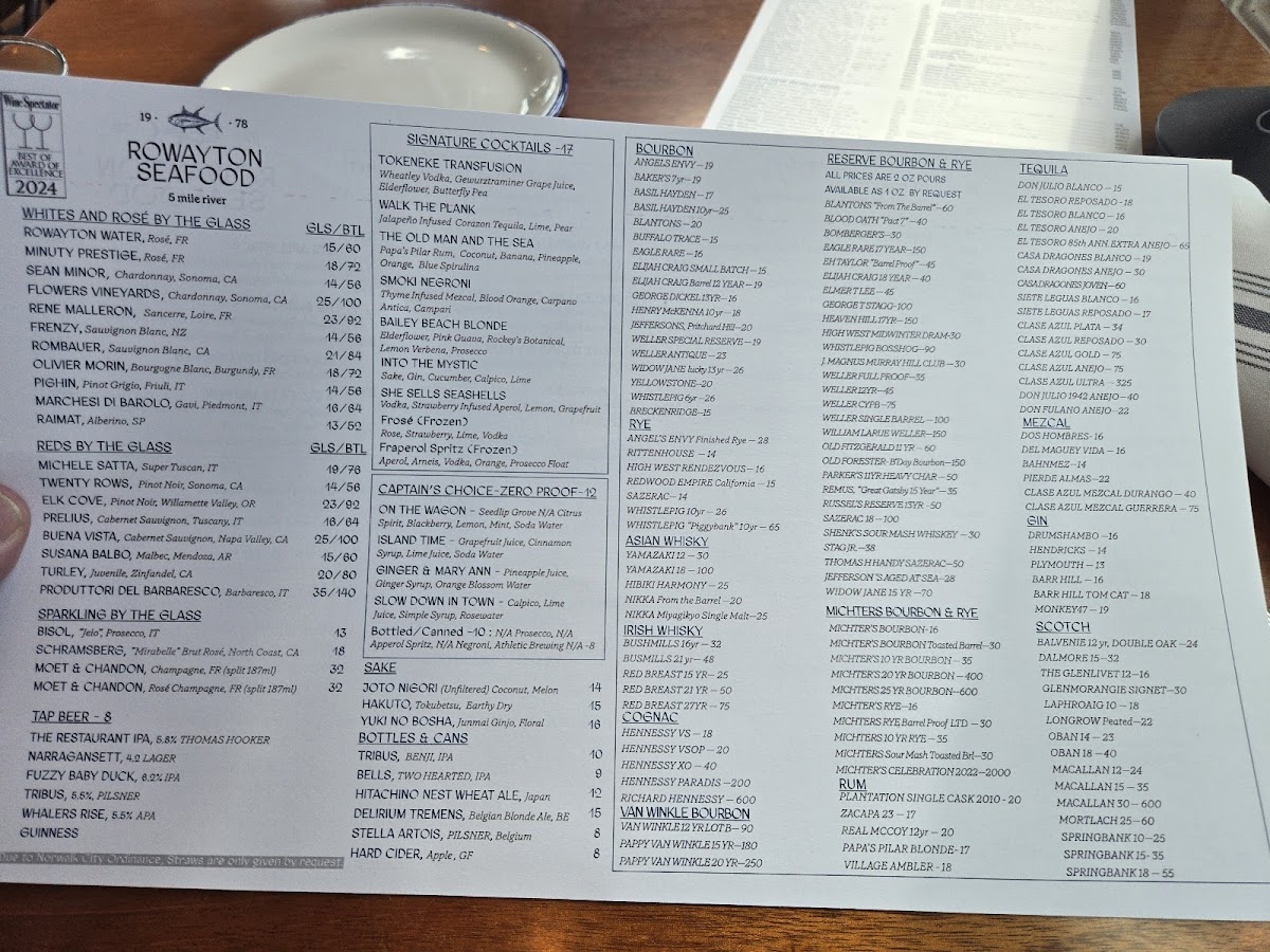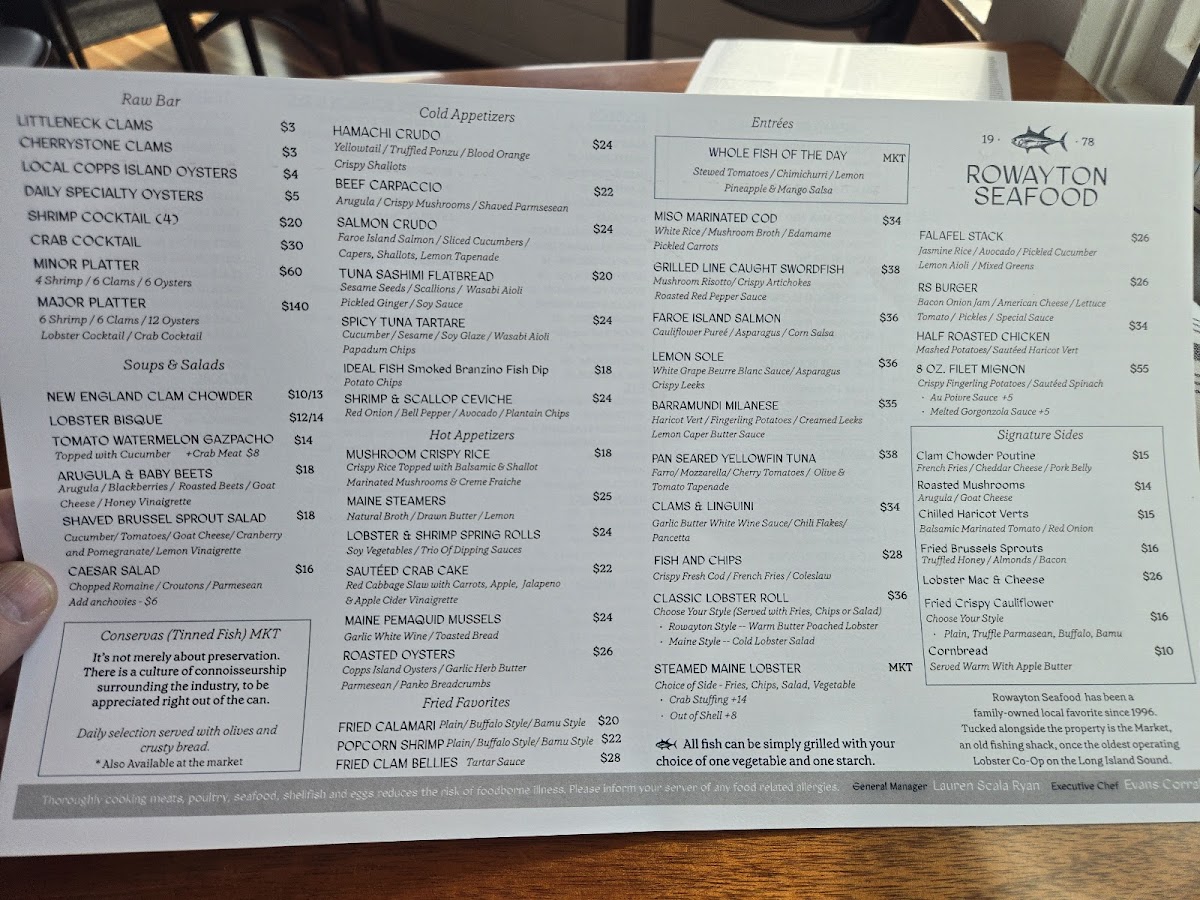 Rowayton Seafood Menu